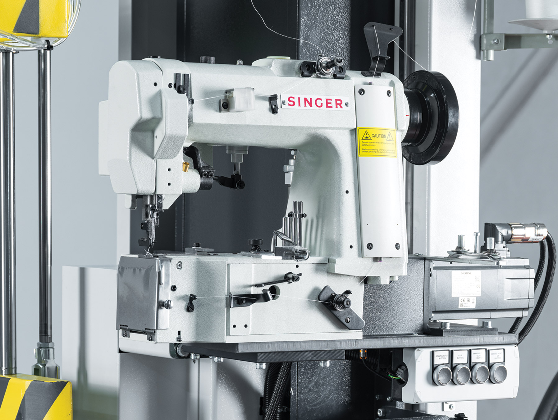 Siemens sistem kalitesiyle ürettiğimiz makinemizle pratik çözümlere sahip olacaksınız. Özellikle operatörlerin kullanabilecek 4 pedal ile kolay bir kontrol elde ederken köşe dönüş ve düz dikişlerin hızlarını da birbirinden ayrı bir şekilde ayarlayabileceksiniz. Üzerinde bulunan sensörlerle ister otomatik isterseniz de pedallar ile köşe dönüş ayarlamalarını yapabileceksiniz. Bakımını ve servis hizmetlerini kolayca yaparak sorunsuz bir üretim hattına sahip olacaksınız. Uluslararası standartlara uygun özelliklere sahip M-4300 Otomatik Kenar Kapama Makinası ile işinize teknoloji katacaksınız.